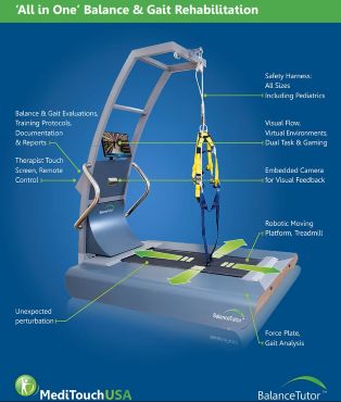 The BalanceTutor allows the therapist to create a postural perturbation such as a slip or a trip.