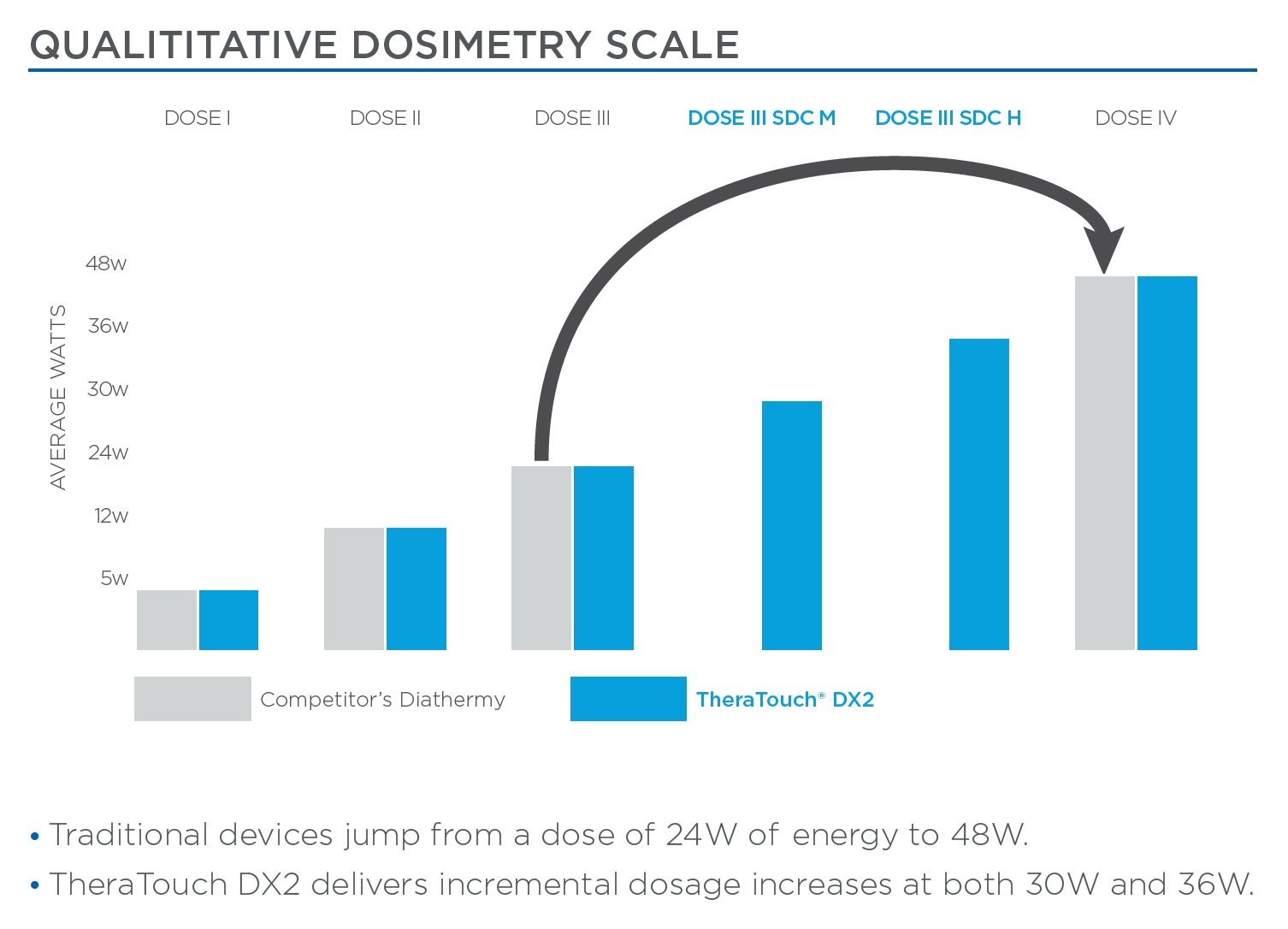 Scientific Dosage Control (SDC) allows for two additional dosimetry settings within Dose III provide more options for therapeutic heating within patient comfort tolerances.